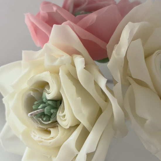 Buchet format din 3 lumanari tip floare naturala trandafiri English rose mari